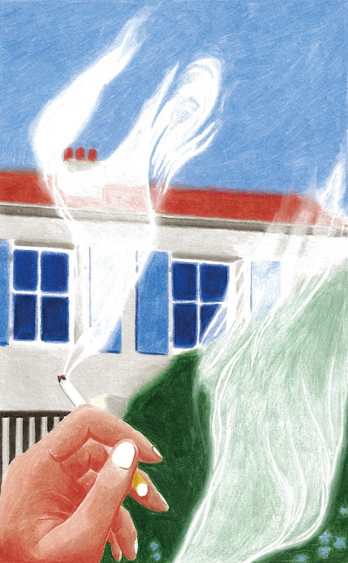 Fumer au jardin • 24/03/2021 •Crayons de couleur • 297mmx210mm