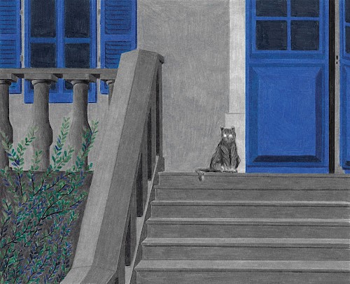 Sur le perron de chez Lucas • 06/08/2022 •Crayons de couleur • 297mmx210mm