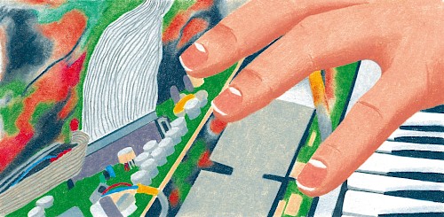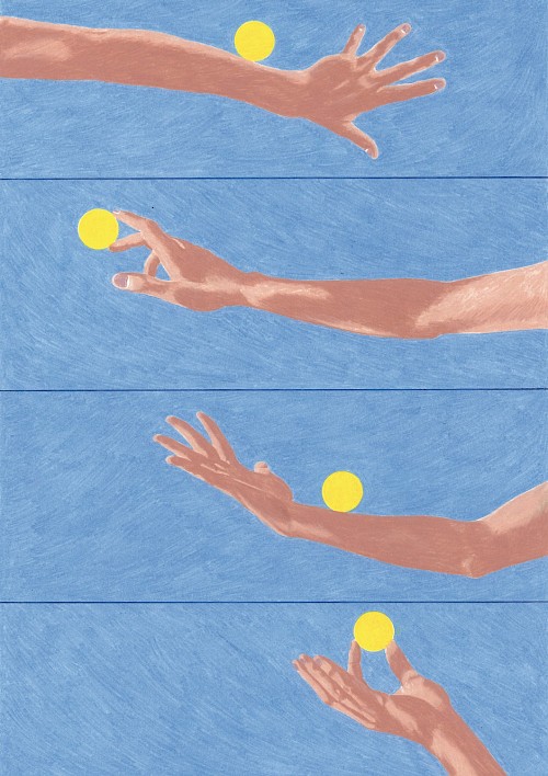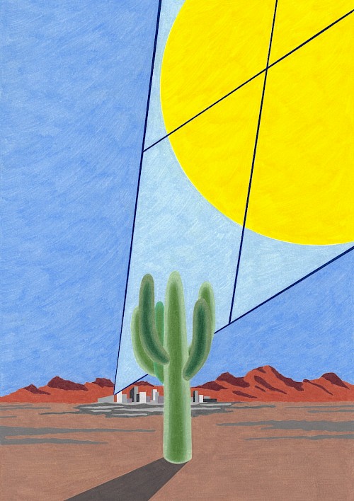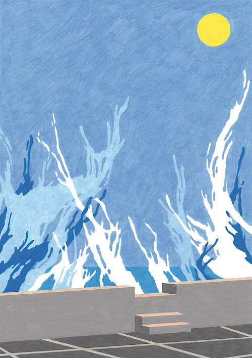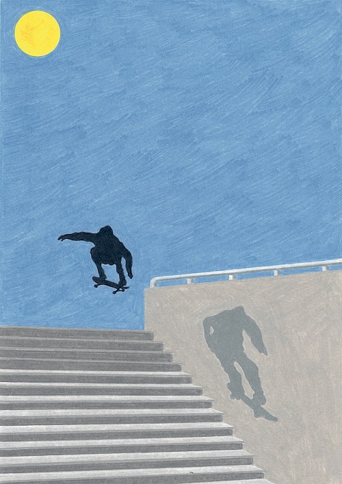 Téo Transinne est illustrateur autodidacte, originaire de la Drôme et vivant à Sète. Depuis 2023, il dessine pour le secteur culturel en France et à l’international. On peut retrouver ses illustrations dans les kiosques à journaux, des concerts aux États-Unis ou des expositions à Lyon. Ses dessins au crayon de couleur s’inspirent du quotidien, du ciel, du soleil, à l’intérieur de cadrages resserrés. Clients : Le Nouvel Obs, Revue XXI, Kiblind, Zeit Verbrechen, Khruangbin, Musée de l’imprimerie et de la communication, Ville de Villeurbanne...