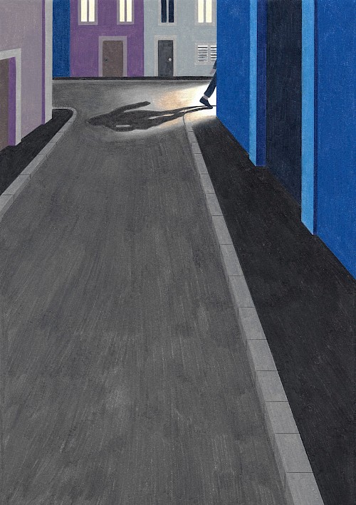 La solitude (illustration pour le magazine Zeit Verbrechen) • 20/04/2024 •Crayons de couleur • 297x210mm